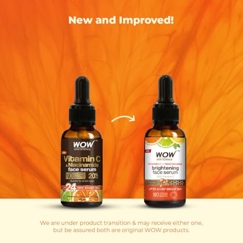 WOW Skin Science Brightening 20% Vitamin C Face Serum | Boost Collagen and Elastin for Anti aging, Skin Repair | For Dark Circles, Fine Lines | Glowing Skin | Hydrates | 30 ml