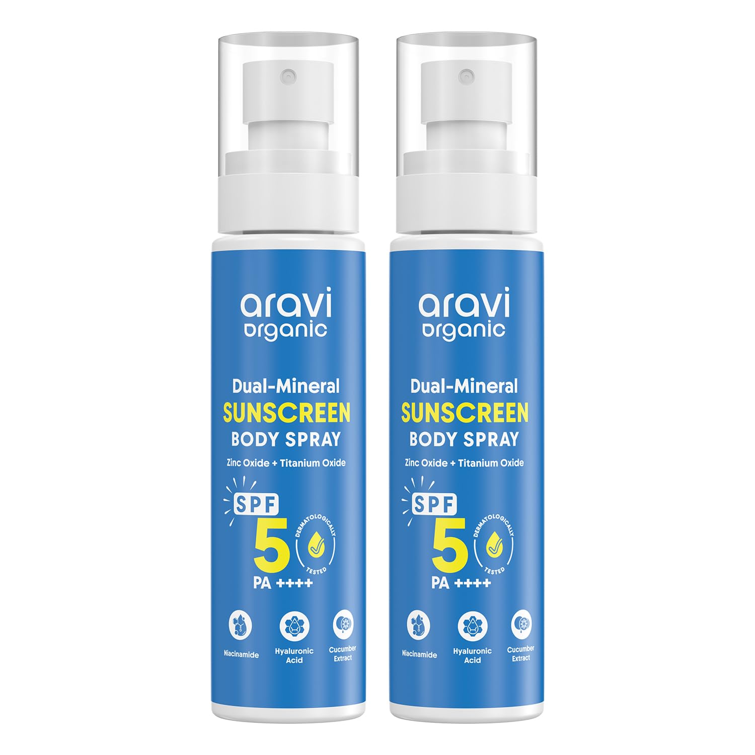 Aravi Organic Dual Mineral Sunscreen Body Spray. This advanced sunscreen combines Zinc Oxide and Titanium Dioxide to provide broad-spectrum SPF 50 protection shielding your skin from harmful UVA and UVB rays. Ideal for all skin types including sensitive skin this lightweight water-resistant spray absorbs quickly leaving no greasy residue or white cast behind. It is free from parabens sulfates and synthetic fragrances making it the perfect choice for those with delicate skin or those who prefer a more eco-friendly option. Whether you're lounging by the pool or enjoying an outdoor adventure this sunscreen delivers long-lasting protection while nourishing your skin.