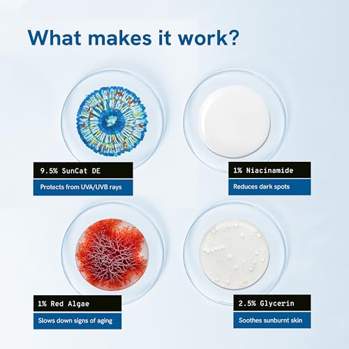 • SunCat DE Technology (9.5%): Our sunscreen utilizes state-of-the-art technology to scatter and reflect harmful UV rays away from your skin. This innovative approach enhances the overall effectiveness of the sunscreen providing you with superior sun protec