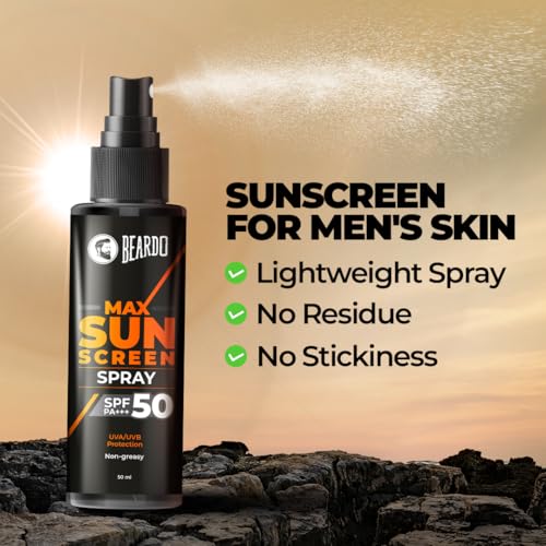Beardo Max Sunscreen SPF 50 & PA+++ Spray for Men | Non-greasy Spray for Men | Easy Application of Sunscreen for Oily Skin | UVA UVB Protection | 50ml