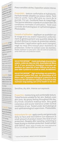 SUN ACTIVE DEFENSE is high-tech sun protection reinforced against UVA rays. It combines UV filters and patented biological protection that improves the skin's ability to defend itself to help maintain your health in the long term.