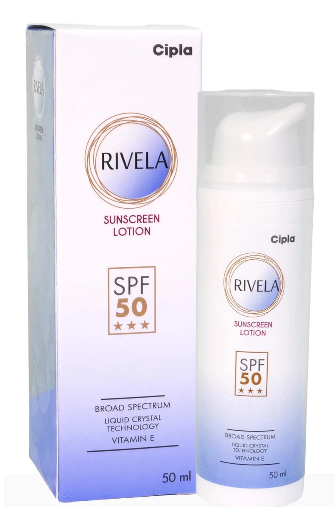 It is a cipla rivela spf50 sunscreen lotion 50 ml advanced tinosorb filters provides booster effect for higher spf protection.;high spf 50;provides 98% uvb protection from sunburn