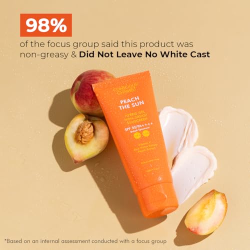 HomeHealth & PersonalSkin CareFace CareSunscreenConscious Chemist® Sunscreen SPF 50 PA++++ | 50g | Gel Sunscreen for Oily Skin, Vitamin C with Rice Water & Peach Extract, Hybrid Lightweight, All Skin Type - Peach The Sun