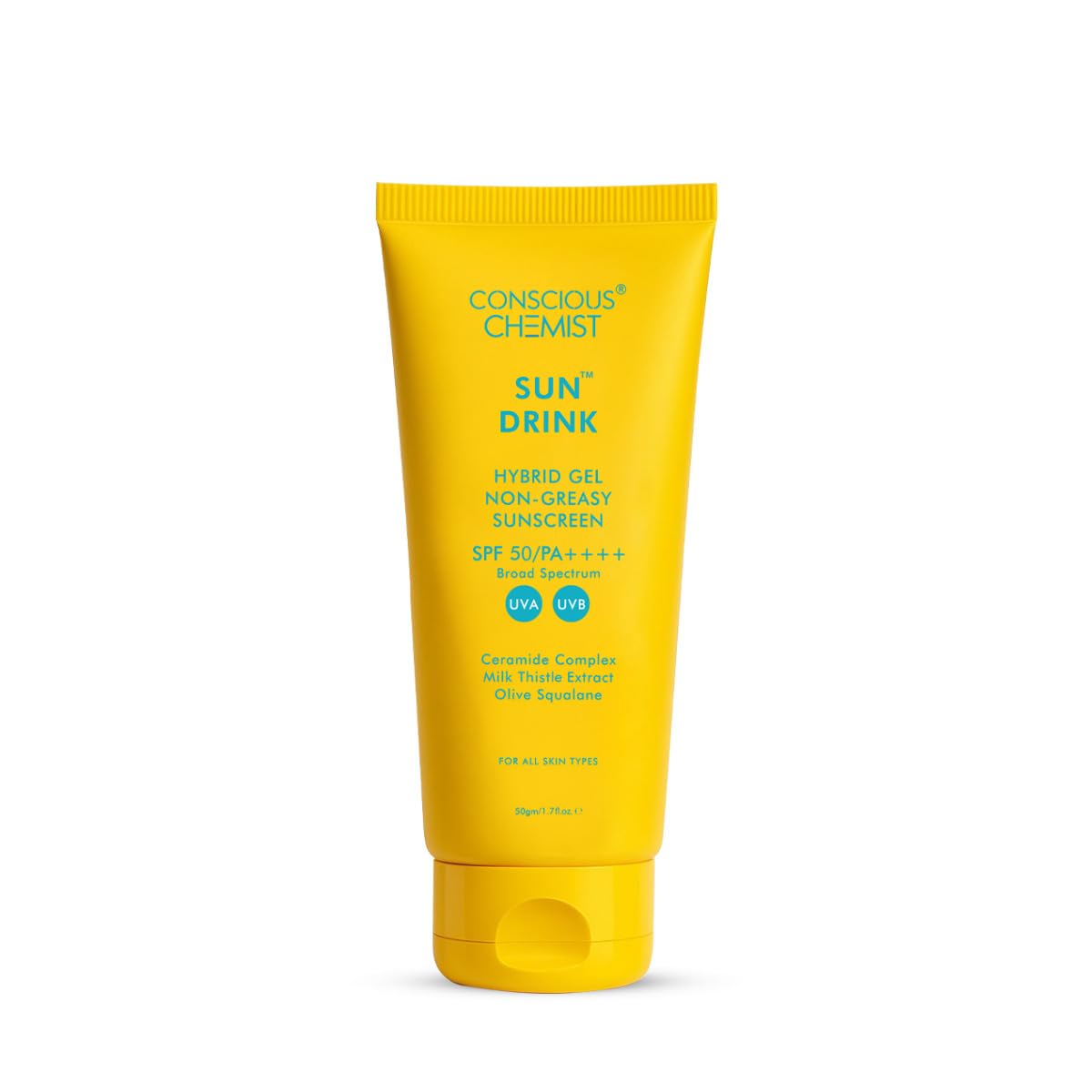 Conscious Chemist Dewy Ceramide Sunscreen SPF 50 PA++++ | For Oily Skin | UVA/UVB & Blue Light Protection | Fragrance-Free | For Men & Women, All Skin Type - Sun Drink | 50g