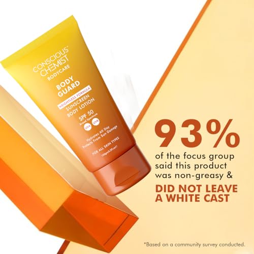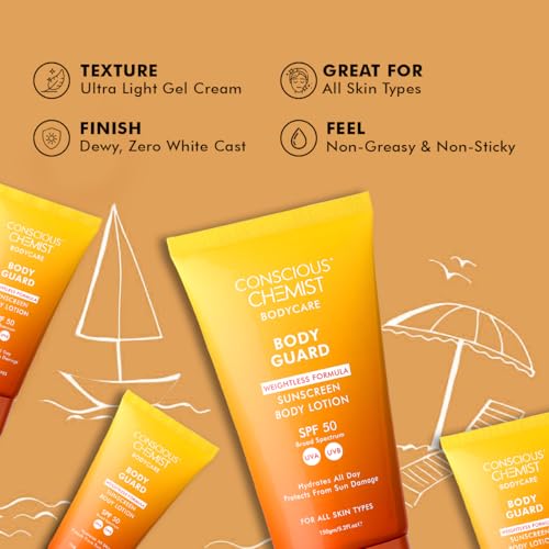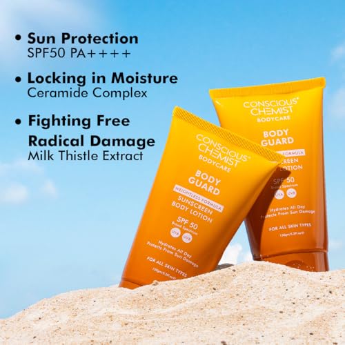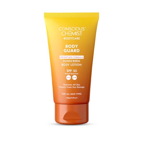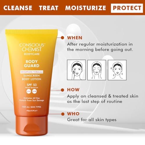 Conscious Chemist® Sunscreen SPF 50 | 150g | Sunscreen for Oily Skin, Instant Cooling, De-tan SPF Body Lotion, Niacinamide with Ceramides & Betaine, UVA/UVB Protection, Reduces Dark Spots, All Skin Types - Body Guard