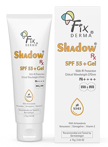 HomeHealth & PersonalSkin CareFace CareSunscreenFixderma Shadow RX Sunscreen SPF 55+ Gel PA+++ | Sunscreen for Oily Skin | Minimum Sunscreen SPF 50 | Sunscreen for Body & Face | Hybrid Sunscreen with UVA, UVB, IR Protection and Vitamin E - 75gm