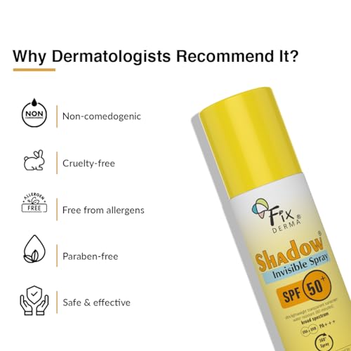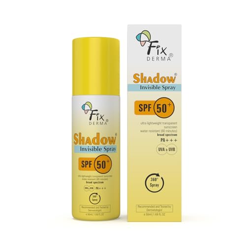 Fixderma Shadow SPF 50+ PA+++ Invisible Spray | Ultra Lightweight Transparent Sunscreen | Water Resistant Broad Spectrum UVA&UVB Sunscreen water resistant, spray for body, fluid sunscreen spray 50ml ( Pack of 1)