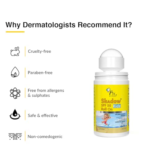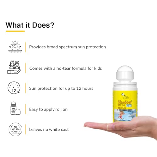 Fixderma Shadow SPF 50 Roll On is the safest and most effective way to protect your child sensitive skin from the sun rays. This broad-spectrum protects against sun exposure and long-term UV-induced skin damage. Its unique composition for skin helps sun allergy and has a roll-on format for easy application. This transparent formulation can be used all over the body without causing a white cast or greasiness.