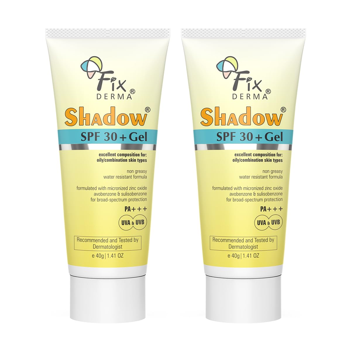 Fixderma Shadow SPF 30+ Gel is a non-oily non-greasy sunscreen formulation which is ideal for oily and mixed type of skin. This light-weight gel spreads perfectly on the skin without leaving any whiteness to the skin. It offers a protection against both UVA & UVB rays. Chemical UV absorbers are generally oily in nature which makes the formulation tacky and greasy. When it comes to oily skin a broad-spectrum gel SPF is ideal. Fixderma Shadow SPF 30+ Gel is an ideal formulation for oily and acne prone skin. A mixture of both physical and chemical based sun protectors it gives a complete coverage without imparting any bad appearance to the skin. The formulation is completely non-comedogenic. To achieve a complete UVA &UVB coverage a mixture of Physical blockers and chemicals absorbers is the ideal sunscreen formulation. The best topical form which suits every skin type is a gel form. Fixderma Shadow SPF 30+ Gel is a similar product designed to suit all skin types including oily dry combination and sensitive skin. It do not blocks the skin pores which makes it a good option for acne prone skin. It has Zinc oxide (micronized) work by scattering the sunâs rays which prevents potentially damaging ultraviolet radiation from getting to the skin. The finely powdered mineral formula used in sunscreen does two thingsâreflect and absorb. A protective zinc oxide layer on top of the skin reflects and absorbs the harmful UVA (also considered to be carcinogenic) and UVB rays such that they donât reach your skin.