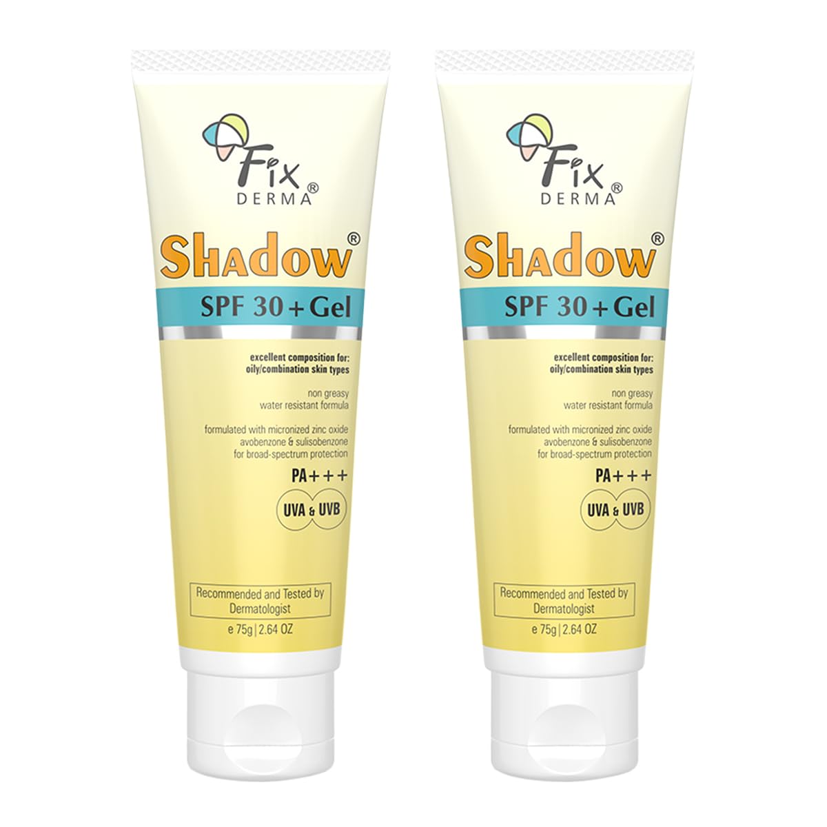Fixderma Shadow Sunscreen SPF 30+ Gel PA+++ |for Oily Skin | Protector SPF 30 |for Body & Face | UVA & UVB Protection | Sunscreen for Women & Men - 75gm (Pack of 2)