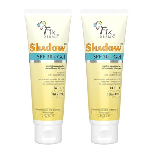 Fixderma Shadow SPF 30+ Gel is a non-oily non-greasy sunscreen formulation which is ideal for oily and mixed type of skin. This light-weight gel spreads perfectly on the skin without leaving any whiteness to the skin. It offers a protection against both UVA & UVB rays. Chemical UV absorbers are generally oily in nature which makes the formulation tacky and greasy. When it comes to oily skin a broad-spectrum gel SPF is ideal. Fixderma Shadow SPF 30+ Gel is an ideal formulation for oily and acne prone skin. A mixture of both physical and chemical based sun protectors it gives a complete coverage without imparting any bad appearance to the skin. The formulation is completely non-comedogenic. To achieve a complete UVA &UVB coverage a mixture of Physical blockers and chemicals absorbers is the ideal sunscreen formulation. The best topical form which suits every skin type is a gel form. Fixderma Shadow SPF 30+ Gel is a similar product designed to suit all skin types including oily dry combination and sensitive skin. It do not blocks the skin pores which makes it a good option for acne prone skin. It has Zinc oxide (micronized) work by scattering the sunâs rays which prevents potentially damaging ultraviolet radiation from getting to the skin. The finely powdered mineral formula used in sunscreen does two thingsâreflect and absorb. A protective zinc oxide layer on top of the skin reflects and absorbs the harmful UVA (also considered to be carcinogenic) and UVB rays such that they donât reach your skin.