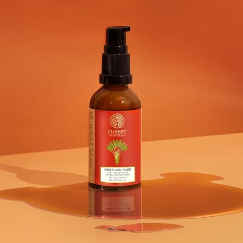 Forest Essentials SUN FLUID Tender Coconut Water with Turmeric & Basil Leaf SPF 50 | PA + + | Lightweight Non-sticky Sunscreen, No White Cast, UVA & UVB Protection | For Dry, Normal, Combination/Oily Skin | 50 ml