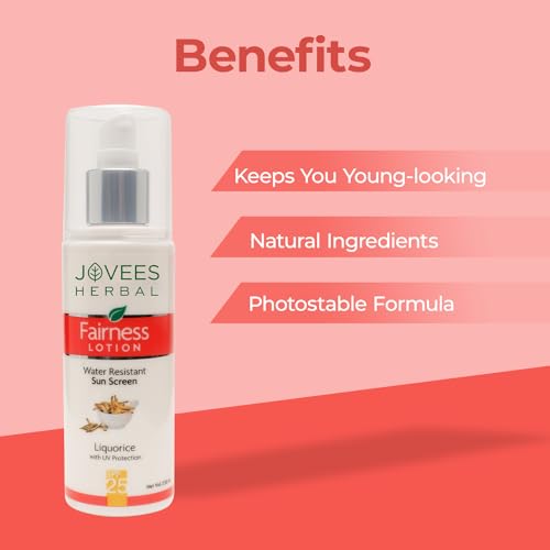 Jovees Herbal Sunscreen Fairness SPF 25 Lotion for Oily, Sensitive | Light Weight,Non Greasy, Quick Absorbing | Protects from Tanning & Uneven Skin Tone 200 ML (Pack of 2)