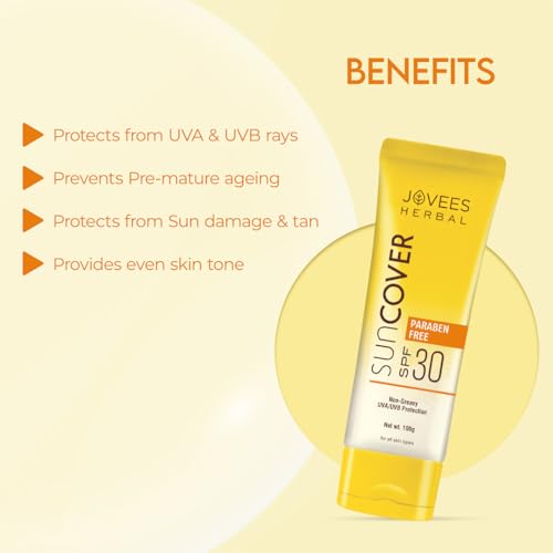 HomeHealth & PersonalSkin CareFace CareSunscreenJovees Herbal Sandalwood Natural Sun Cover SPF 30 | Protect From Sun Damage, UVA/UVB Rays & Blue Light | Lightweight and Oil Free Sunscreen For All Skin Type 100g