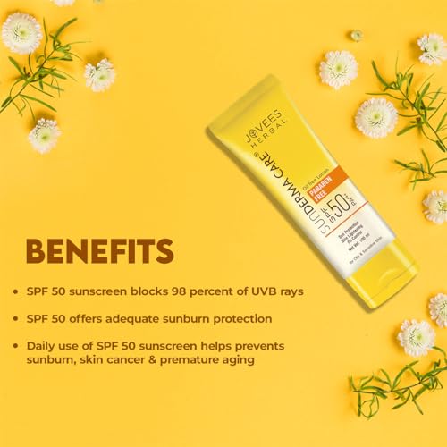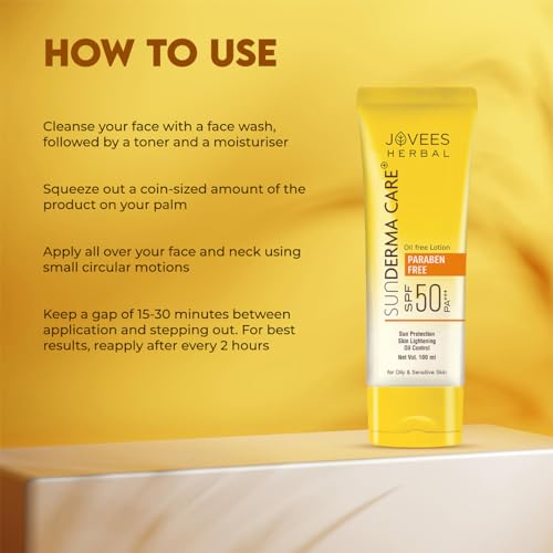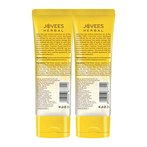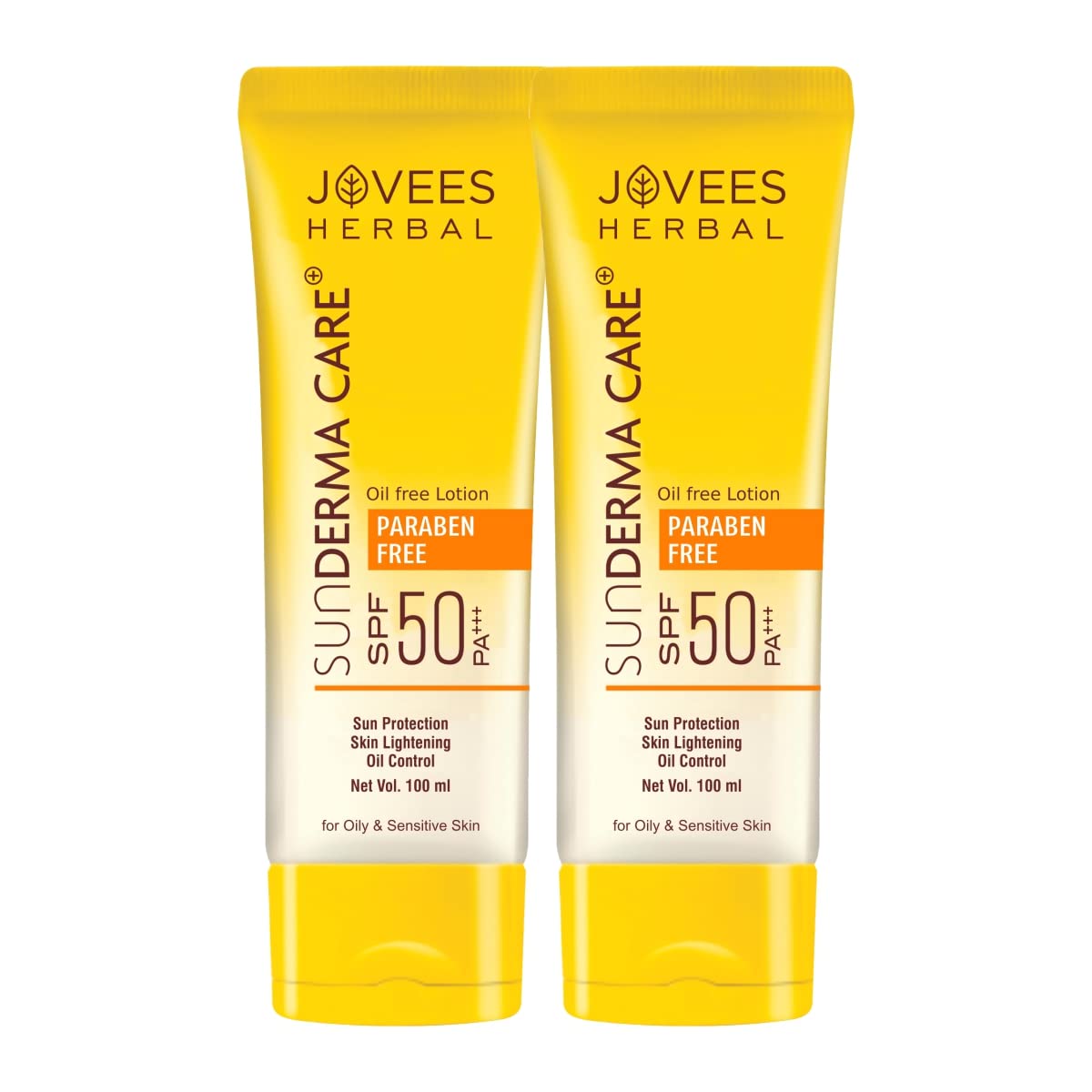 Jovees Herbal Sun Derma Care Lotion SPF 50 PA+++ Broad Spectrum, UVA/UVB Protection | Oil Free, Quick Absorption & Lightweight | For oily and sensitive skin 100ml (Pack of 2)