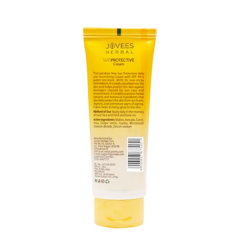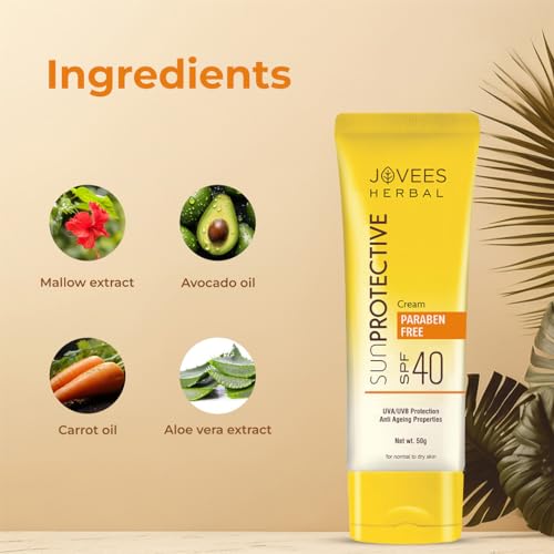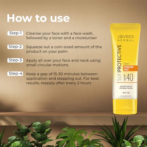 Jovees Herbal Sun Protective Sunscreen SPF 40 | Lightweight, Quick Absorbing and Oil Free - UVA/UVB Protection | Normal to Dry Skin Type | Paraben & Alcohol Free 50g