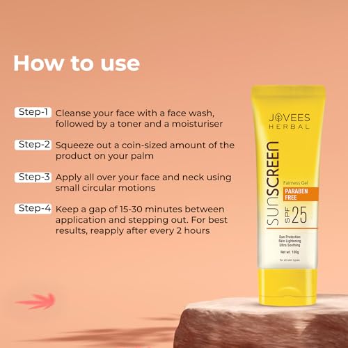 Jovees Herbal Sunscreen Fairness Gel SPF 25 For Tanning & Sun Damage | Oily, Sensitive, Dry Skin | Sunscreen For protect Your Skin with Lightweight & No White Cast Formula | Women/Men 100g