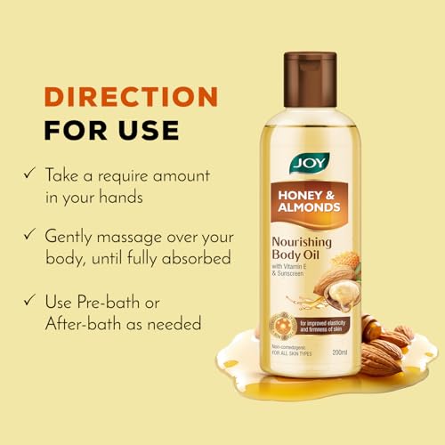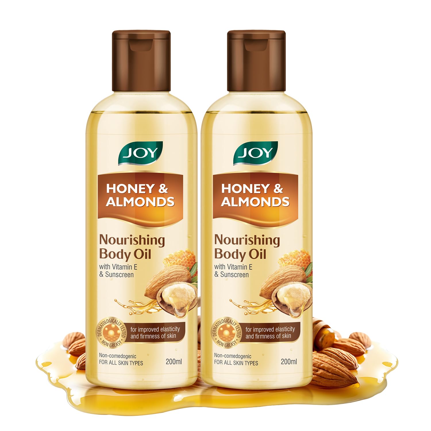 HomeHealth & PersonalSkin CareFace CareSunscreenJoy Honey & Almonds Body Oil for Women & Men | Nourishing Body Oil with Vitamin E & Sunscreen for All Skin Types | Daily Use Body Massage Oil After Bath for Moisturizing Dry Skin | Pack of 2-400ml