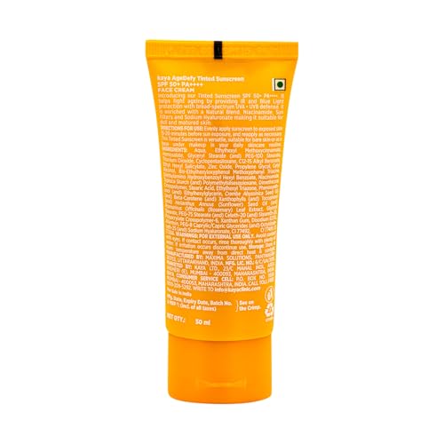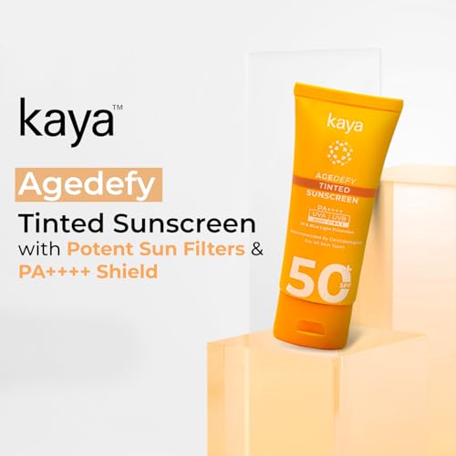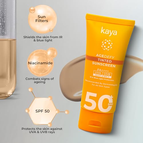Kaya Age Defy Tinted Sunscreen SPF 50 PA+++ | Zinc Oxide, Niacinamide, Radicare Gold | Dermatologist-Developed | 22 Years Expertise | Blue Light, IR, UVA/UVB Protection | 50ml