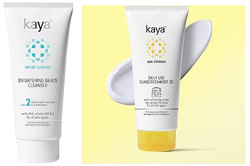 HomeHealth & PersonalSkin CareFace CareSunscreenKaya Clinic Brightening Beads Cleanser, Vitamin E & B3 enriched everyday brightening face wash, 100 ml And Kaya Clinic Daily Use Sunscreen SPF 30, 75ml