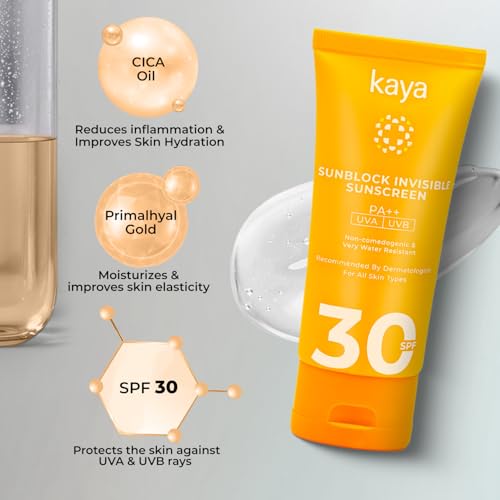 Kaya Clinic introducing our Sunblock Invisible Sunscreen SPF 30 PA++! Specifically crafted for oily and acne-prone skin types this specialized formula combines potent sun filters with the nourishing properties of Sodium Hyaluronate to offer lightweight yet effective protection against harmful UV rays. With its gel consistency our sunscreen ensures effortless application leaving no greasy residue behind. Gentle on the skin it provides a matte finish keeping your complexion shine-free and comfortably shielded throughout the day. Say hello to hydrated protected skin with our Invisible Sunscreen perfect for daily use.