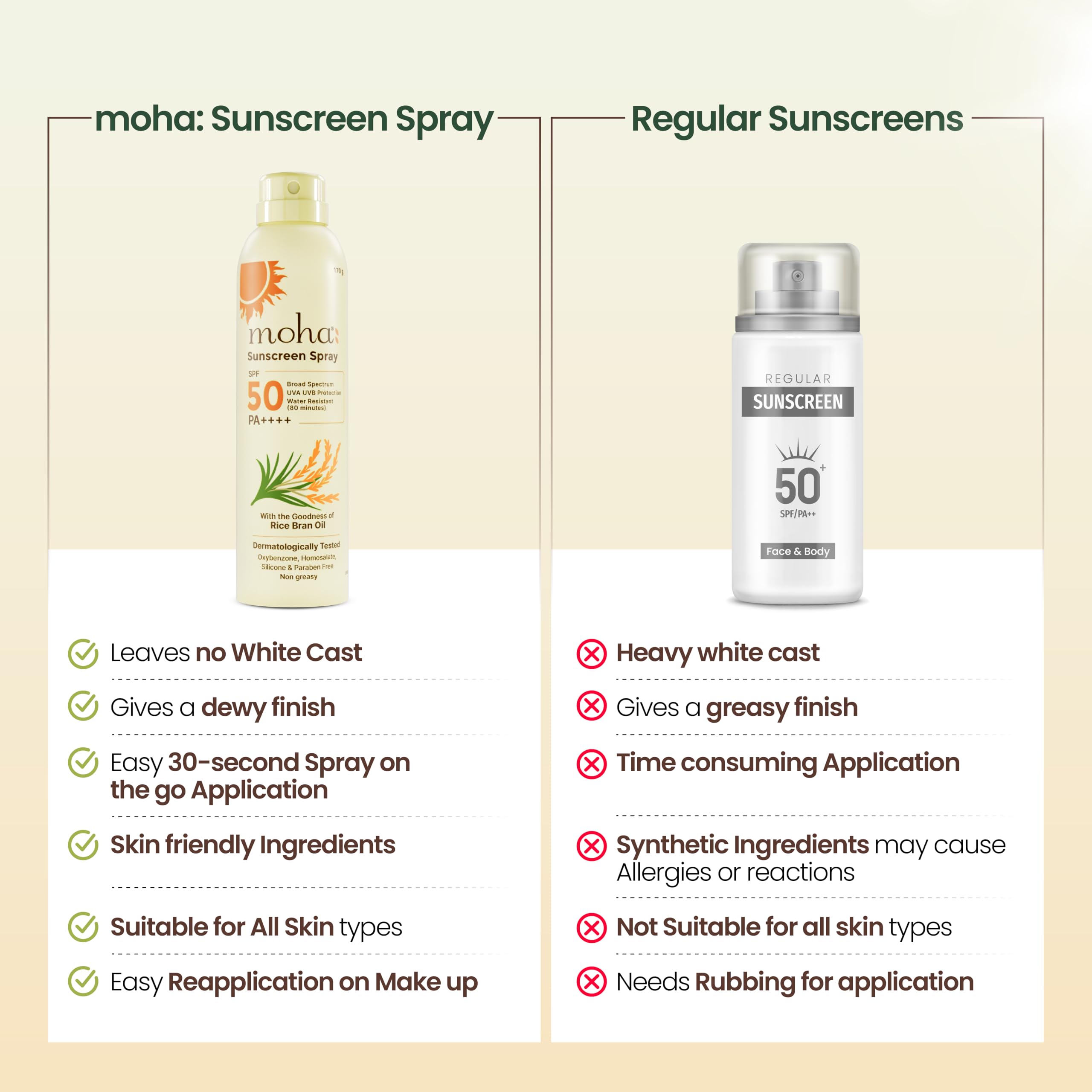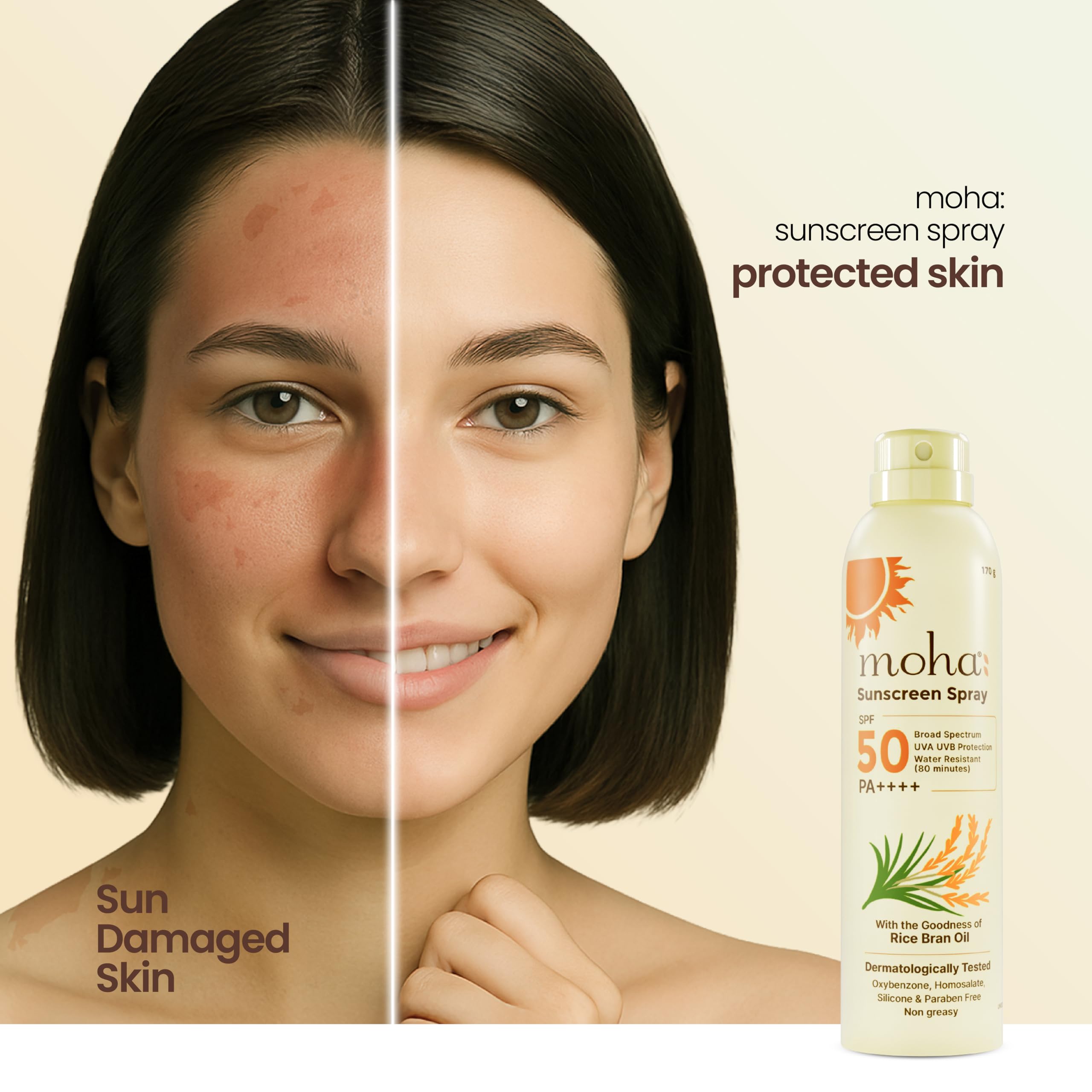 HomeHealth & PersonalSkin CareFace CareSunscreenMoha Sunscreen Spray Spf 50 Body Sunscreen Spray Waterproof Lightweight Uva+Uvb Protection No White Cast Broad Spectrum Pa++++ For Women & Men Spray Sunscreen for face & Body170ml Pack of 3