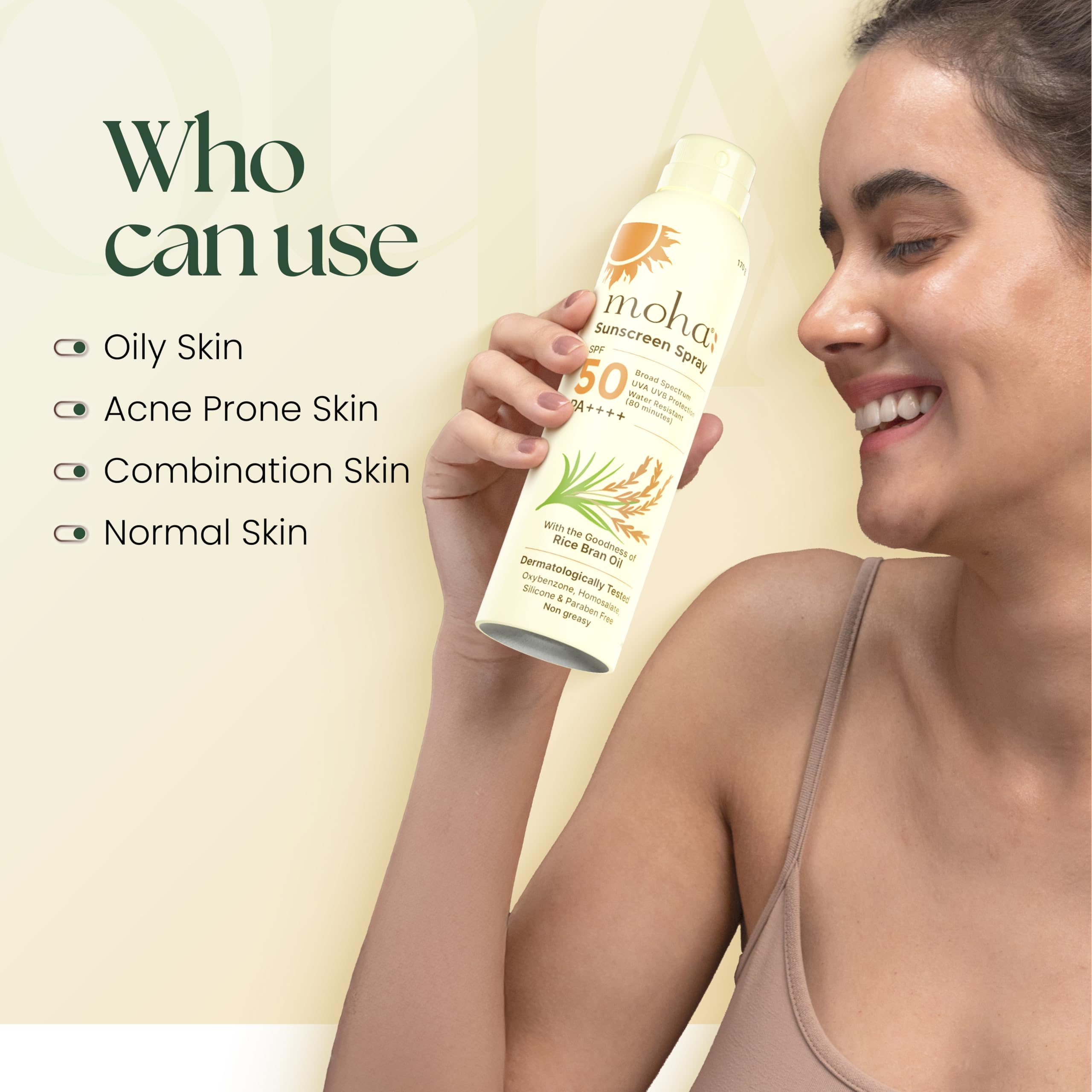 Moha Sunscreen Spray Spf 50 Body Sunscreen Spray Waterproof Lightweight Uva+Uvb Protection No White Cast Broad Spectrum Pa++++ For Women & Men Spray Sunscreen for face & Body170ml Pack of 3