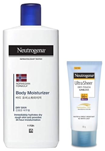 Neutrogena Norwegian Formula Body Moisturizer For Dry Skin 24 Hour Moisturization 250mlNeutrogena Norwegian Formula Body Moisturizer is specially formulated with skin-friendly ingredients this moisturizer locks in the required amount of moisture and instantly hydrates dry or rough skin for a smooth beautiful look. This body lotion provides moisturization that lasts all day long.Neutrogena Ultrasheer Sunscreen SPF 50+ 80gLet your radiant skin be your style statement by using this. It is easy to use and the beneficial properties of its ingredients will bring a magical change in your skin.