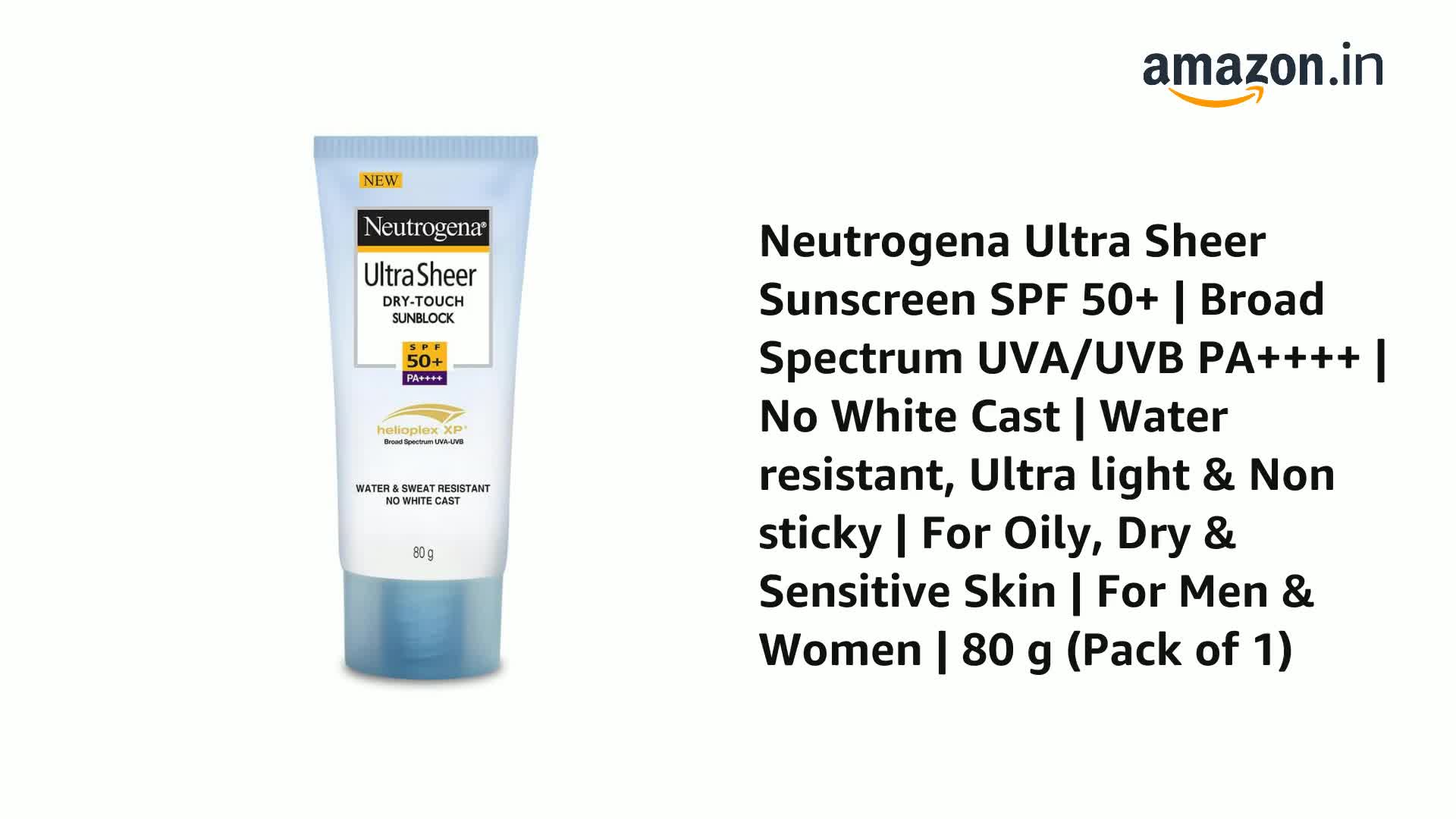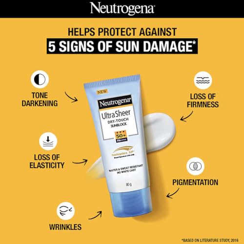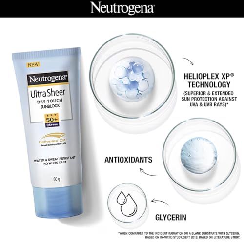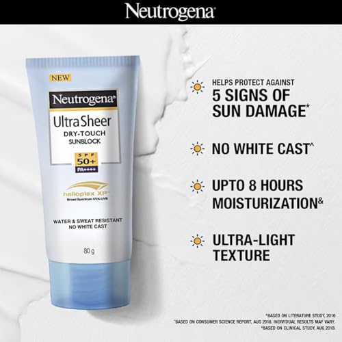 Neutrogena Ultrasheer Sunscreen SPF 50+ PA++++ | Broad Spectrum UVA/UVB | Blue Light Protect | No White Cast | Water Resistant, Ultra Light & Non Sticky | Oily, Dry & Sensitive Skin | For Women & Men | 80g