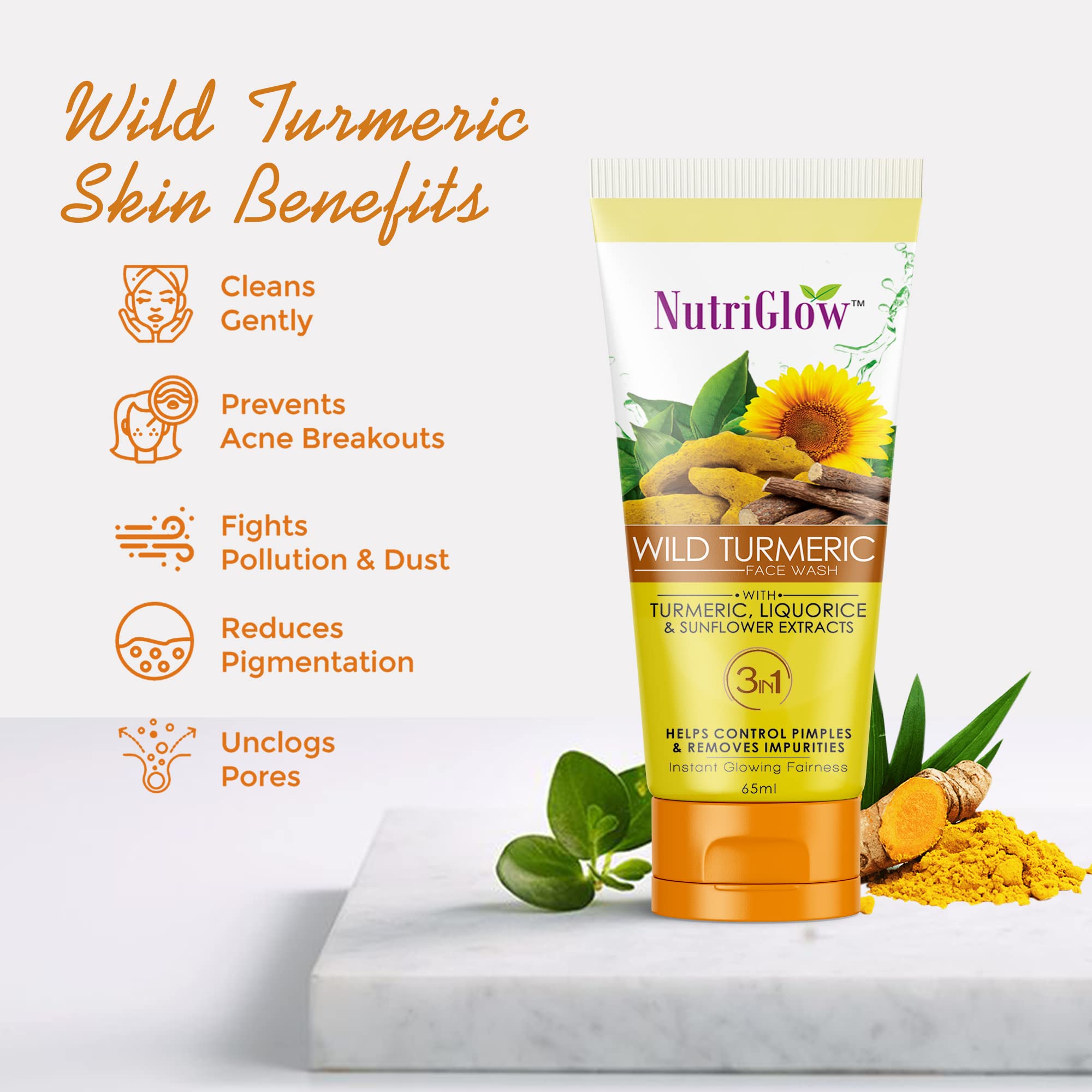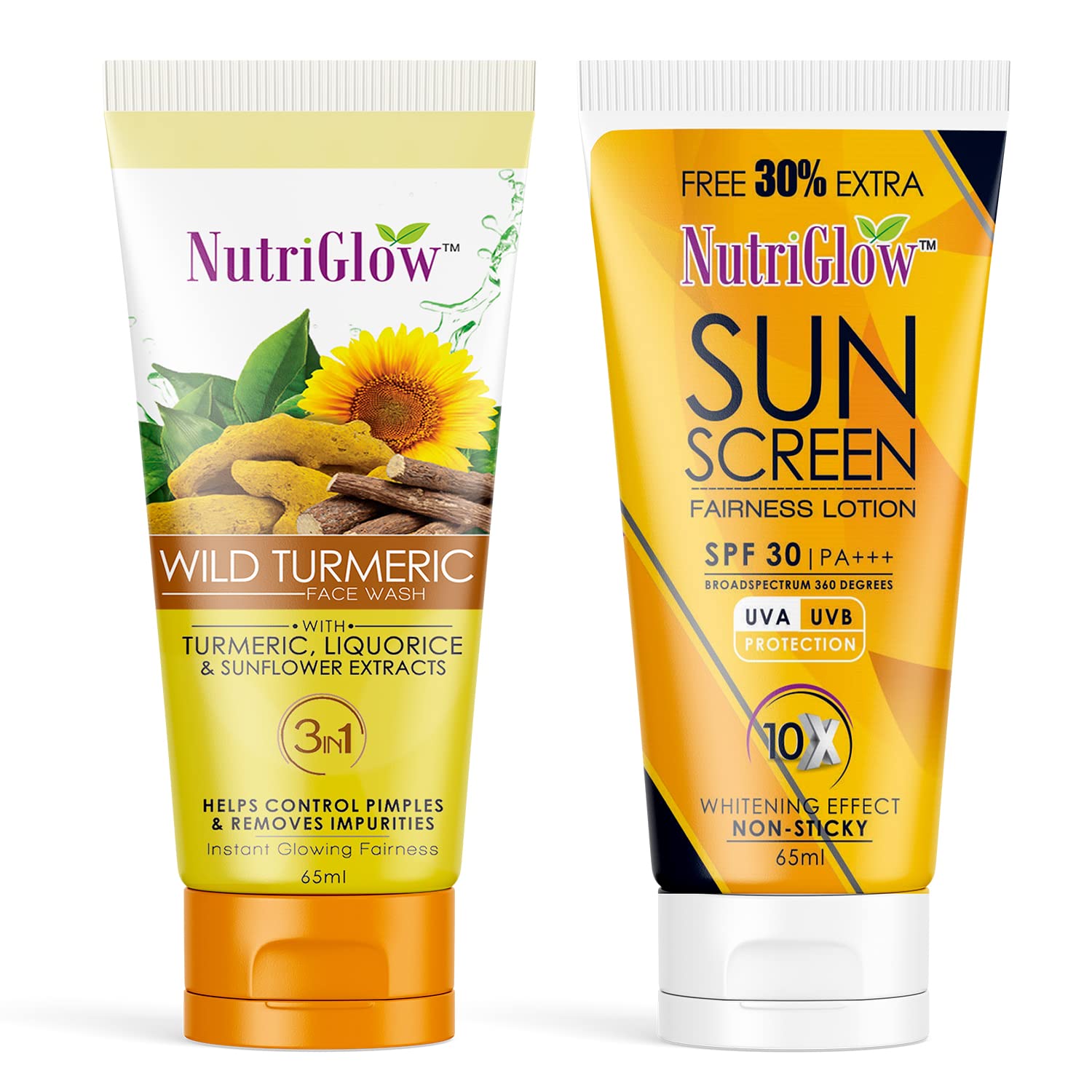 Nutriglow Wild Turmeric Face Wash & Sunscreen Fairness Lotion SPF 30 PA+++ For Control Pimple Glowing Skin & Sun Burn Sun Protection All Skin Types 65ml Each Pack of 2