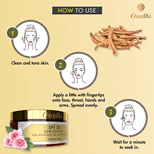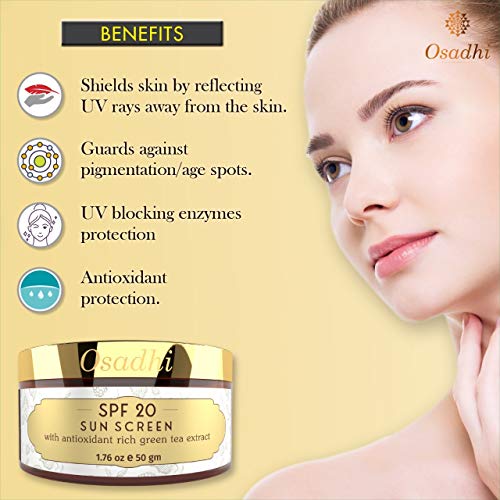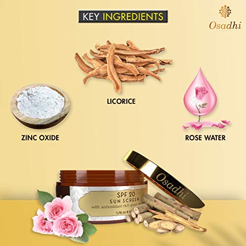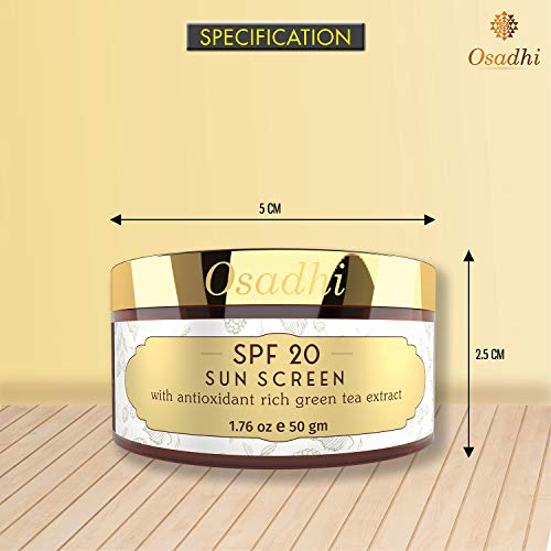 OSADHI Vegan Sunscreen Spf 20 for Women Men With Zinc Oxide for Oily Acne Prone Skin, 50 Gm