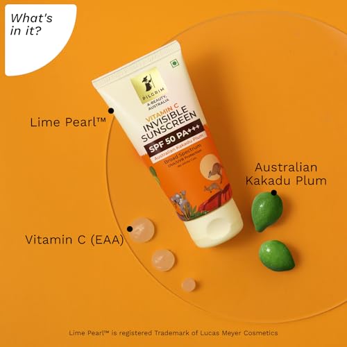 Pilgrim Vitamin C Invisible Sunscreen SPF 50 PA+++ for women & men with Australian Kakadu Plum | Broad spectrum, UVA/UVB Protection, Lightweight Gel | No White Cast | All Skin Types | 45ml