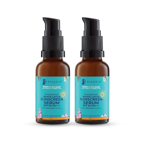 Pilgrim White lotus SUNSCREEN SERUM SPF 30 PA+++ for women & men with Hyaluronic acid & CICA | Oil & silicon free, Broad spectrum, Non-greasy, No white cast | Korean skin care | All skin types | 30 ml