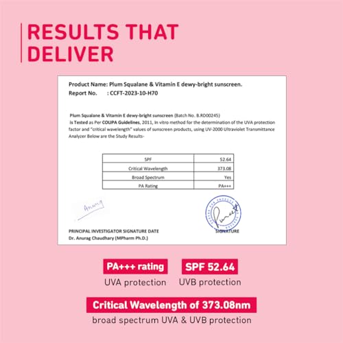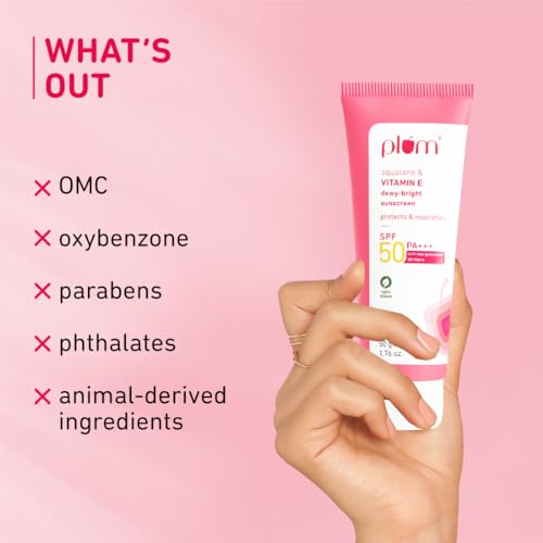 Plum Squalane&Vitamin E Dewy-Bright Sunscreen Spf 50 Pa+++|No White Cast,Lightweight,Non-Sticky|All Skin Types|Sunscreen For Women&Men|100% Vegan|50 G