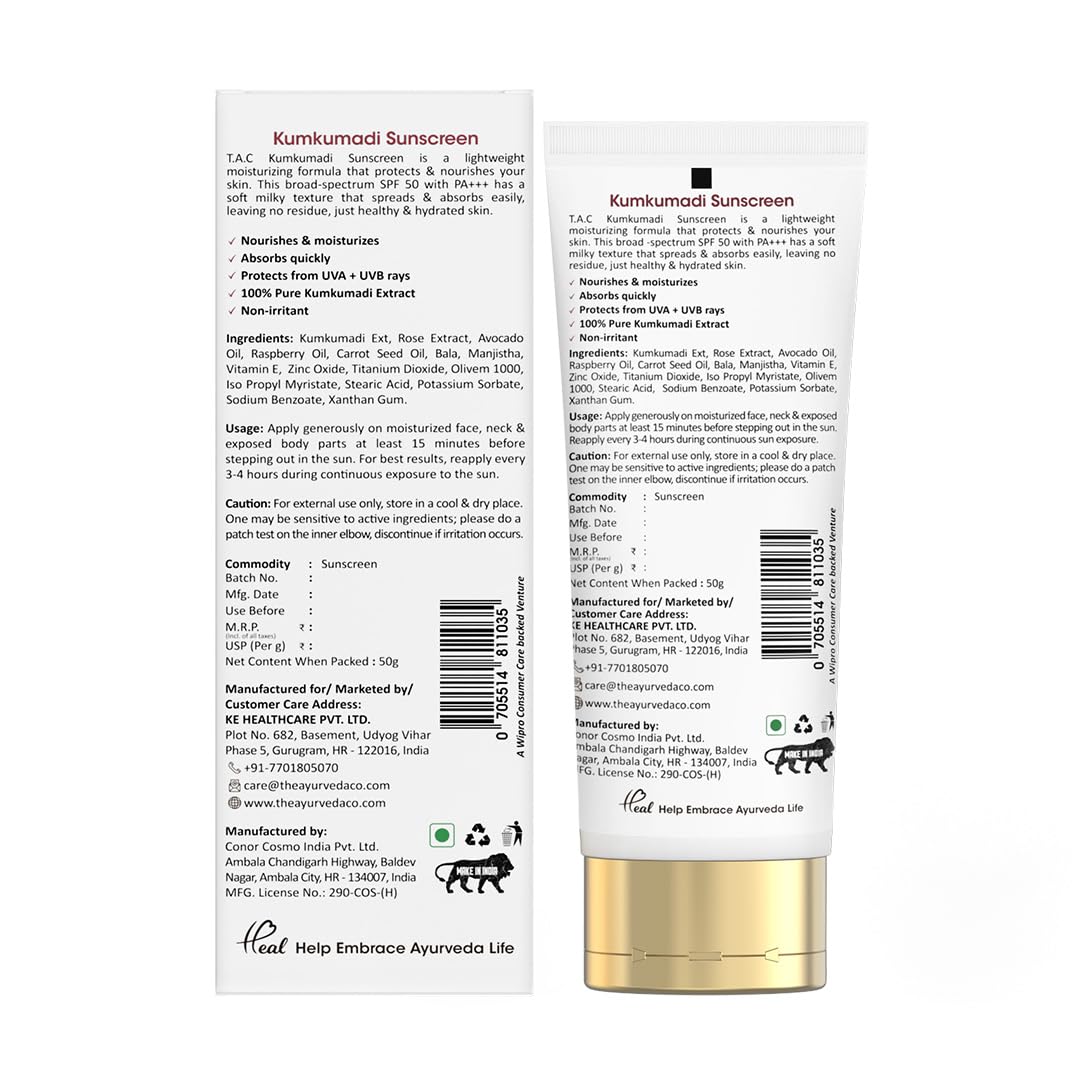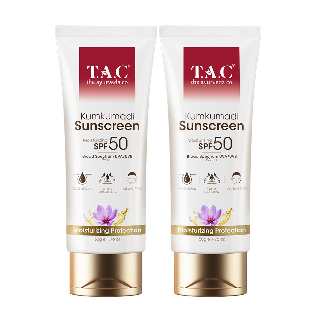 HomeHealth & PersonalSkin CareFace CareSunscreenTAC Kumkumadi Ultra Light Sunscreen - Ayurvedic Sunscreen for Sun protection & Glow PA+++ UVA/UVB - No White Cast for Women & Men 50g (SPF 50+ 50 g (Pack of 2))