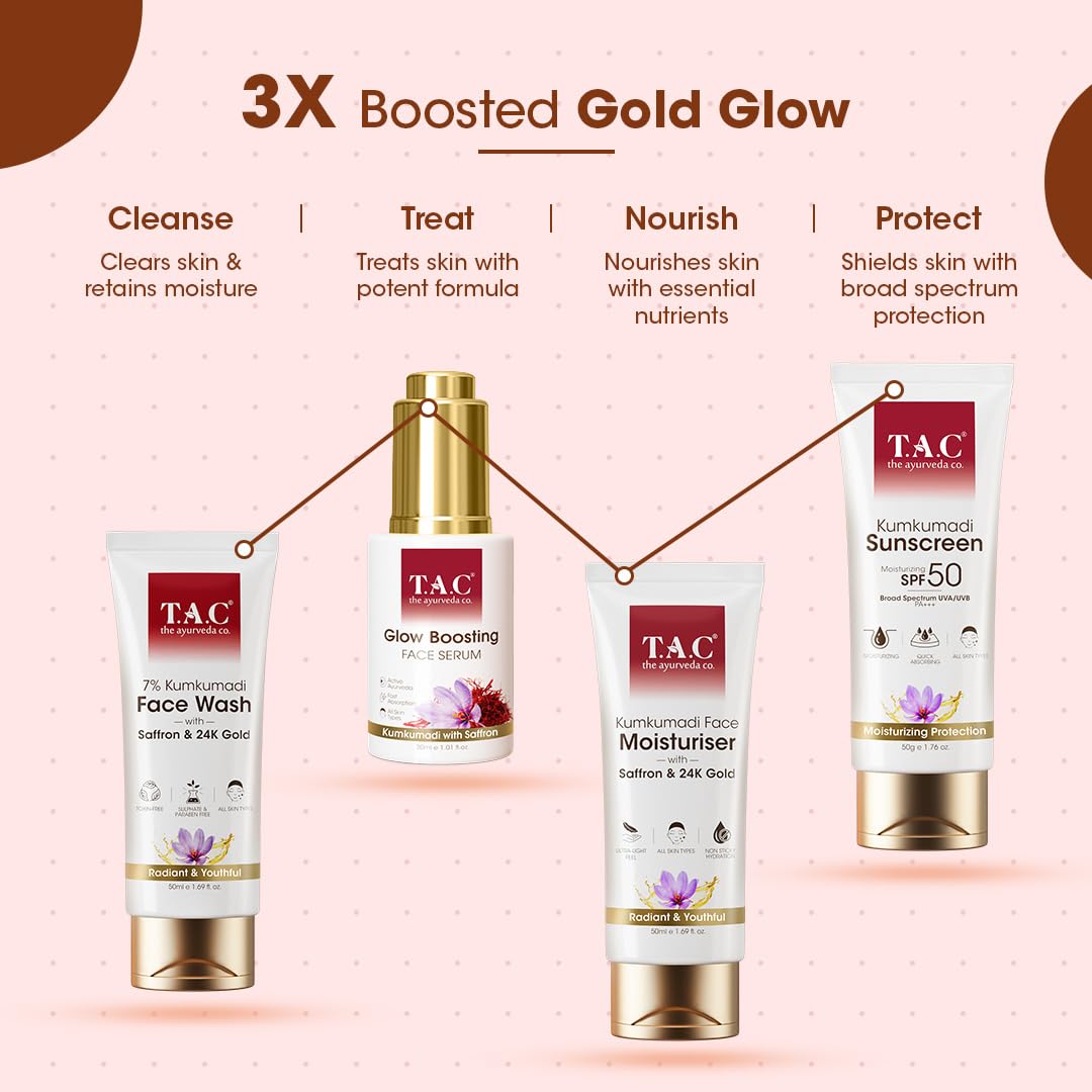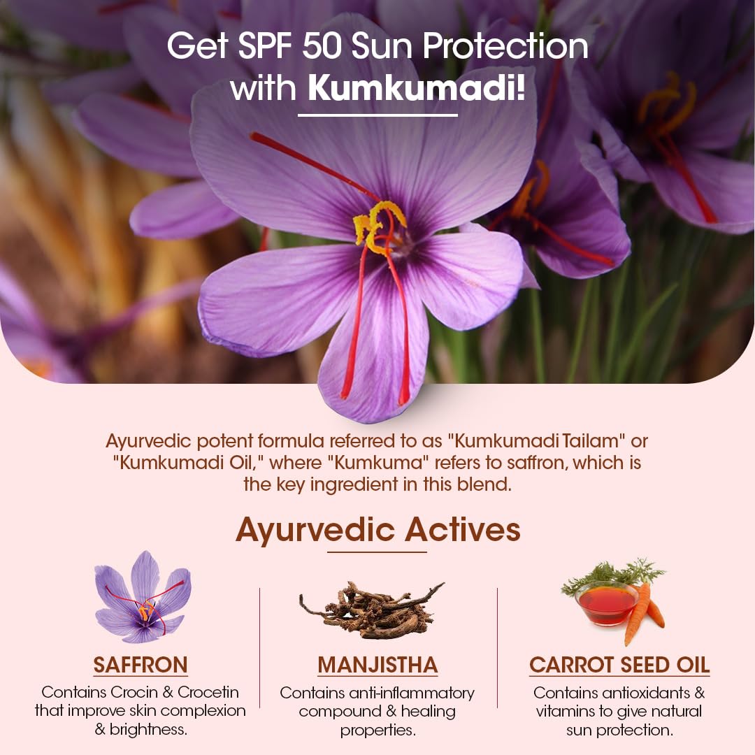 TAC Kumkumadi Ultra Light Sunscreen - Ayurvedic Sunscreen for Sun protection & Glow PA+++ UVA/UVB - No White Cast for Women & Men 50g (SPF 50+ 50 g (Pack of 2))
