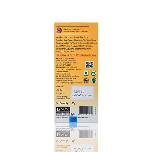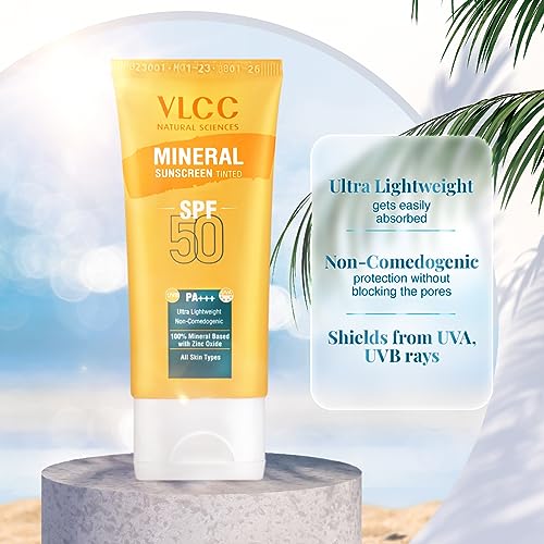 VLCC Mineral Sunscreen with tint SPF 50 PA+++ is a rich mousse textured cream with 100% zinc oxide. It provides superior broad-spectrum protection against the harmful UVA & UVB rays. It is lightweight non-greasy and silicone based with universal tint formulation that blends with every skin tone.
