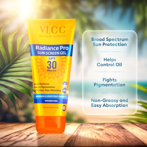 VLCC Radiance Pro SPF 30 PA+++ Sun Screen Gel - 50g X 2 (Pack of 2) | UVA & UVB Protection | Non-Greasy Sunscreen for Anti-Pigmentation | Helps Smoothen and Brighten Skin | Sun Protection Filters.