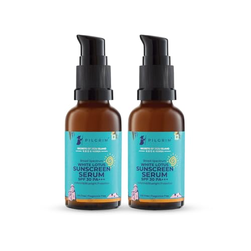 Pilgrim White Lotus Hyaluronic Sunscreen Gel Serum SPF 30 PA+++ for All Skin Types I Broad-Spectrum Protection I UVA/UVB Protection I Hydrating & Oil-Free I Non-Greasy I Fragrance-Free – Pack of 2