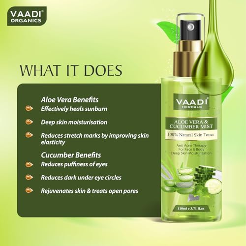 • Effective toner formulated with organic aloe vera leaves and cucumber for revitalized and rejuvenated skin