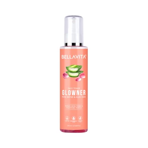 Bella Vita Organic Glowner Face Toner, Alcohol free, Rose Water 200ml Pore Minimizing Tightening Natural Toner Spray for Glowing Skin - All Skin Types