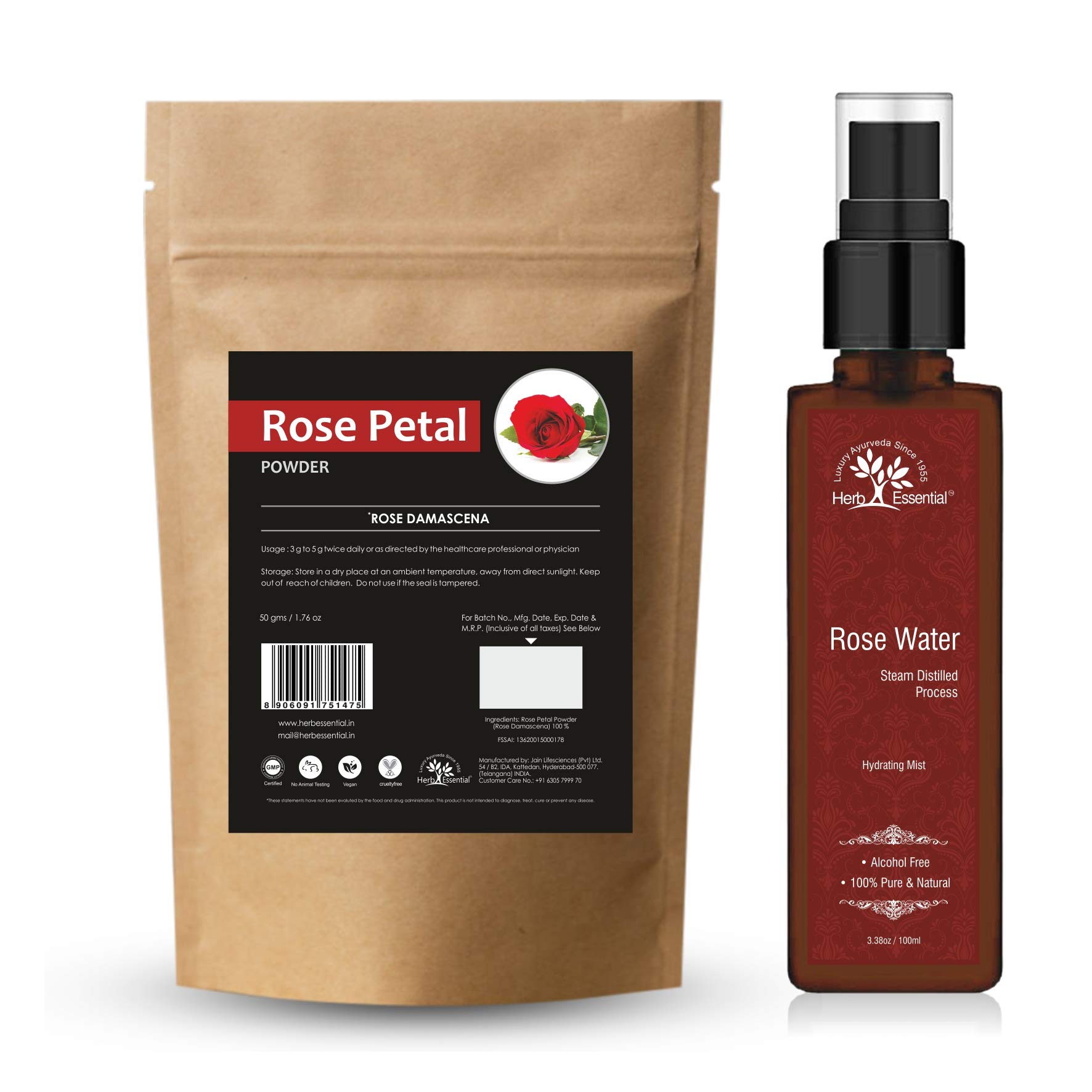 Combo Pack For Glowing Skin Rose Petal Powder 50gm Rose water 100ml