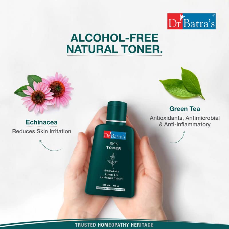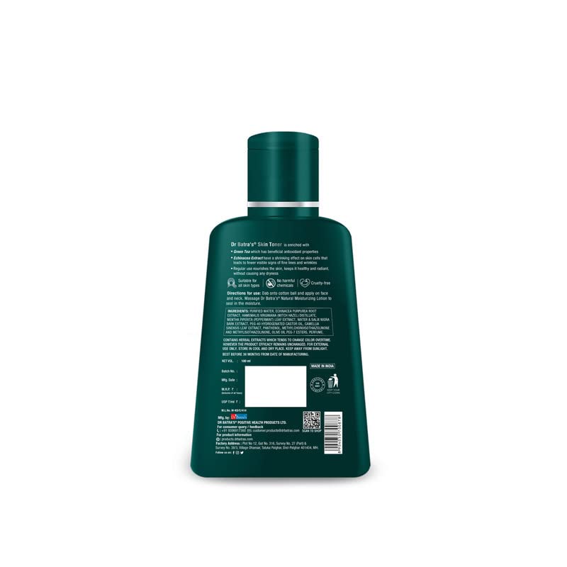 Dr Batra's Skin Toner is a unique blend of non-alcoholic preparation. Enriched with a combination of natural extracts it is the perfect toner for oily to dry skin. Strengthened with extracts of Echinacea its powerful properties help to keep skin smooth and supple. Rich in antiGreen Tea enhances overall skin health. Witch Hazel extracts act as a natural astringent to refresh ify and your skin. Elevate your daily skincare regime with regular use of this gentle skin toner.