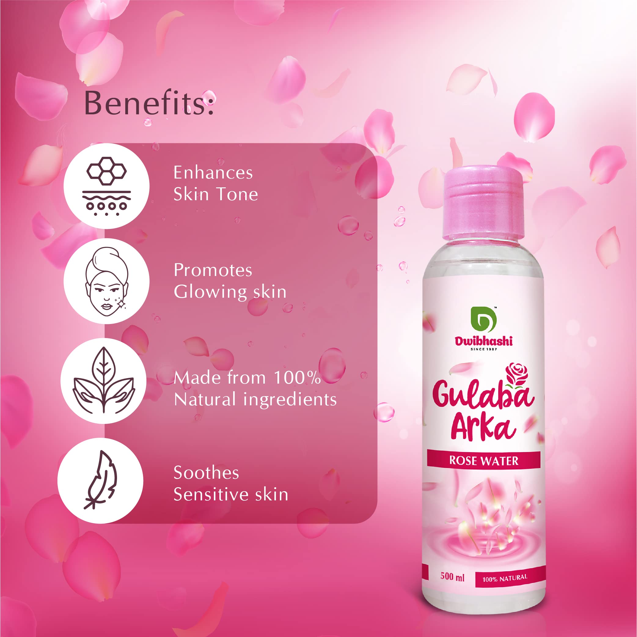 Dwibhashi Gulaba Arka (Rose Water) |Natural Skin Toner Provides Glow & Freshness| 500 ml