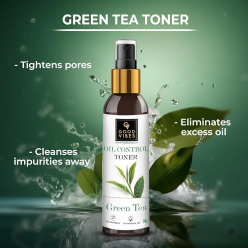 Good Vibes Green Tea Glow Toner 120 ml, Hydrating Purifying Anti Acne Moisturizing Revitalizing Facial Spray Toner for All Skin Types, Natural, No Alcohol, Parabens & Sulphates, No Animal Testing