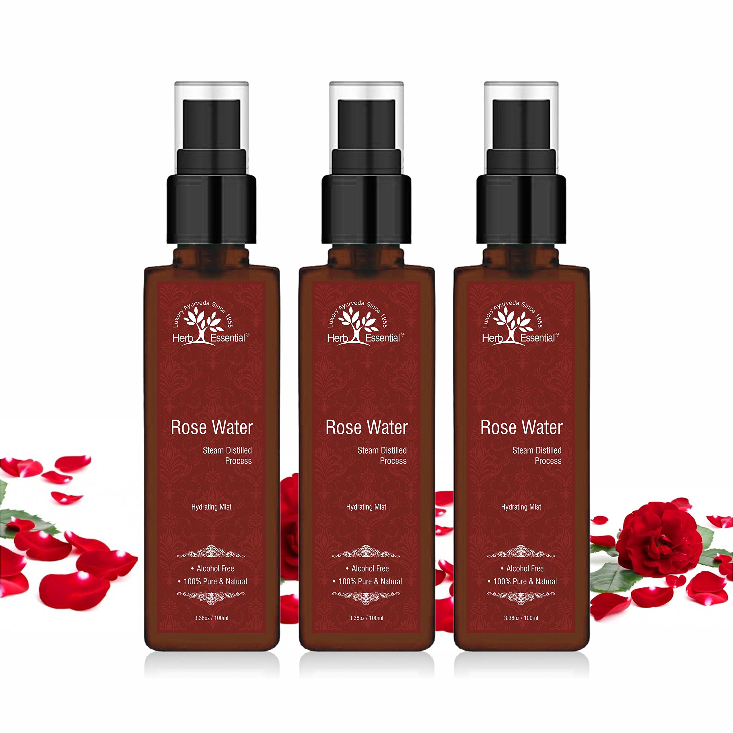 Herb Essential Hydrating Mist Steam Distilled Pure Rose Water 100 ml (3 Bottles)