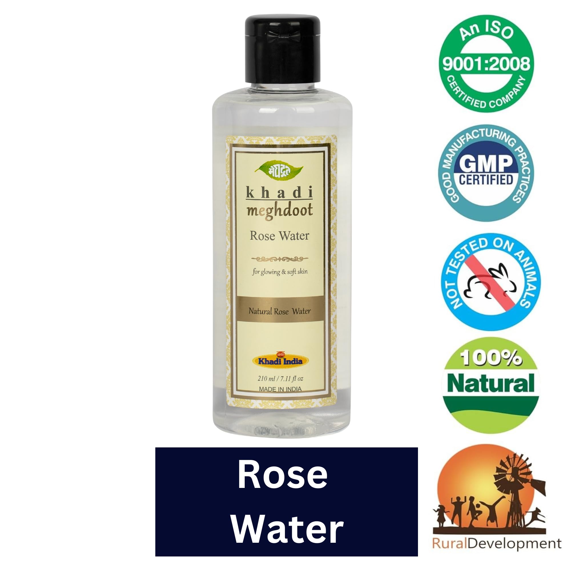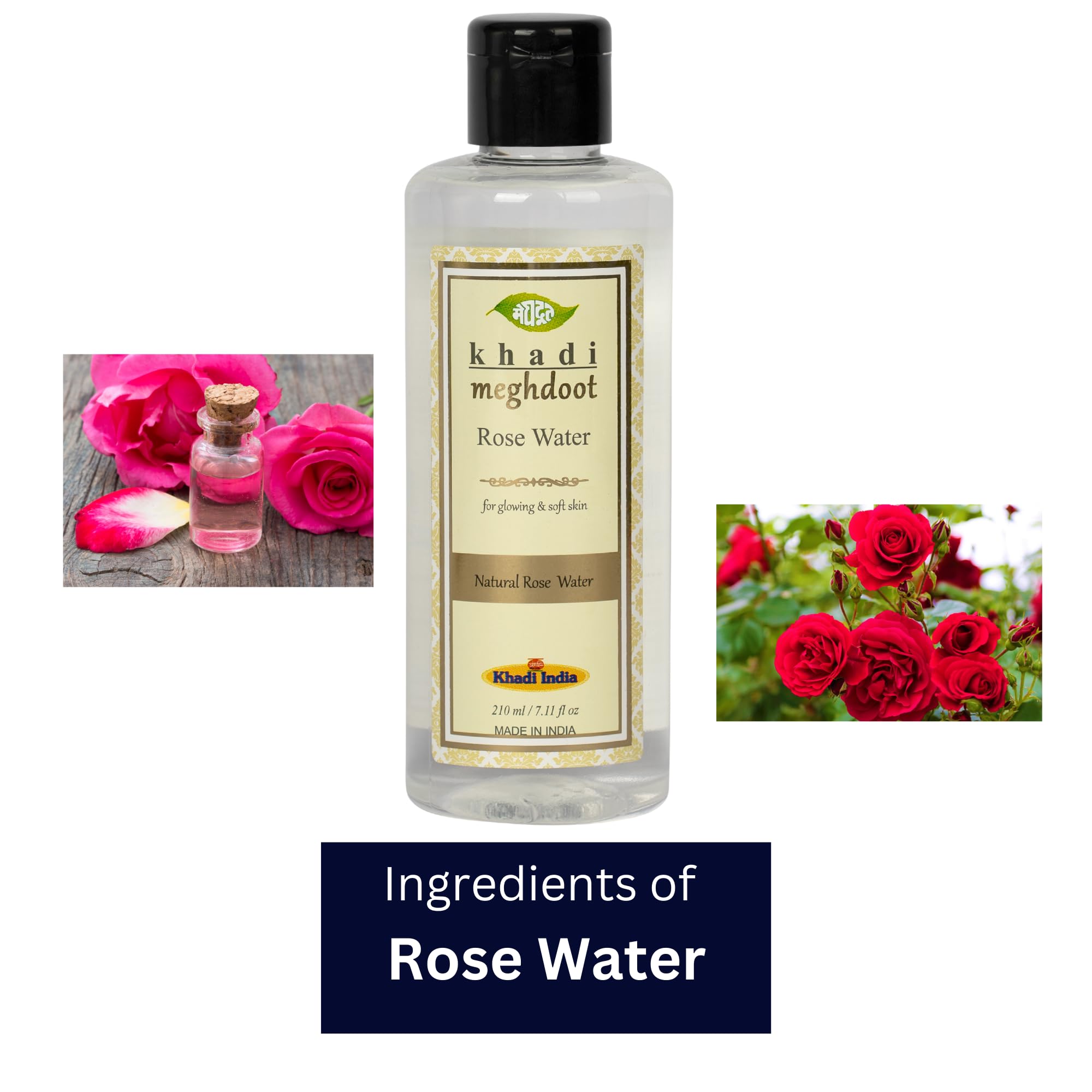 Khadi Meghdoot Natural Ayurvedic Suddh Gulab Jal |Gulab Jal Rose Water For Skin&Glowing FaceEyes&Puja|Enriched With Extracts Of 100% Natural Rose |Dry Skin&Pigmentation 210Ml (Pack Of 2)