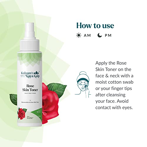 Kulsum's Kaya Kalp Herbals Rose Skin Toner For Skin Rejuvenation & Even Skin Tone, Balances pH | Ideal For Men & Women | With Rose Water | For All Skin Types | 100ml