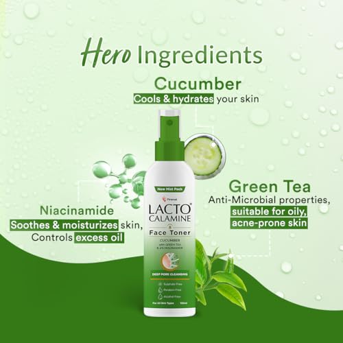 Lacto Calamine Cucumber toner with Green tea and Niacinamide cleanses the skin and tightens the pores. Niacinamide controls excess oil on the skin while cucumber extracts keep the skin cool and hydrated. The natural properties of green tea extracts makes the product suitable for oily and acne prone skin.