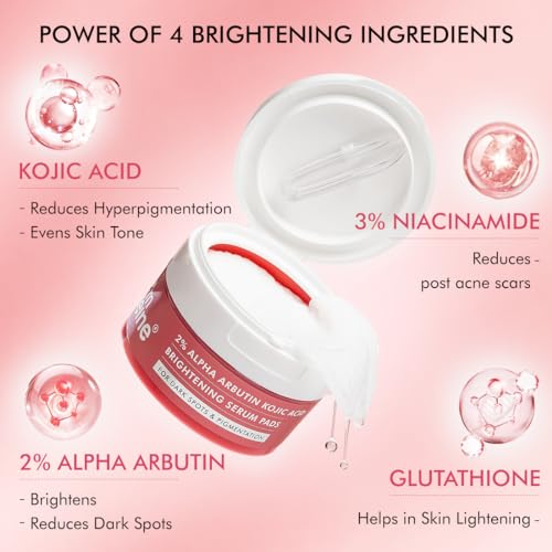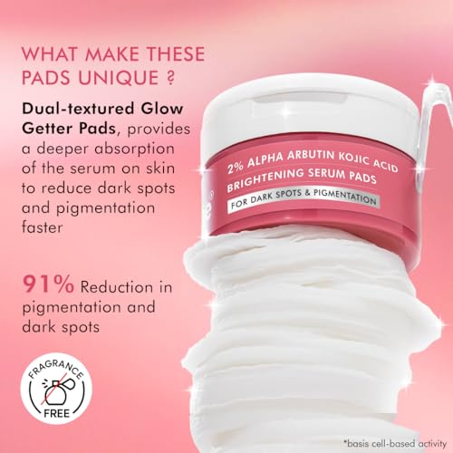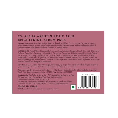 mCaffeine CLEAR GLOW 2% Alpha Arbutin Kojic Acid Brightening Serum Pads with 3% Niacinamide For Dark Spots & Pigmentation | Toner Pads for Even Skin Tone|For Men & Women | Fragrance-Free - 40N